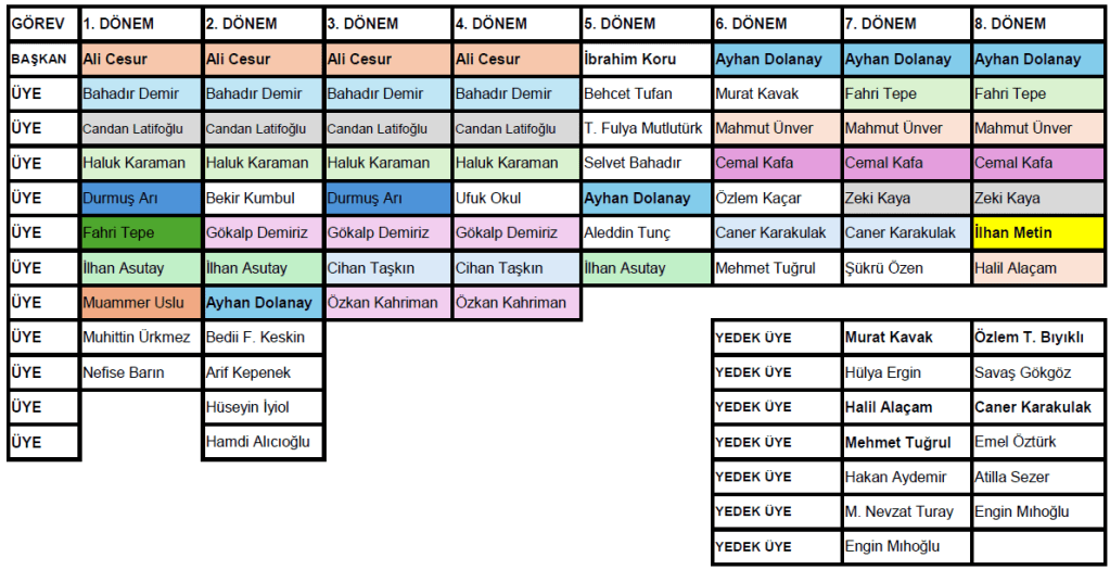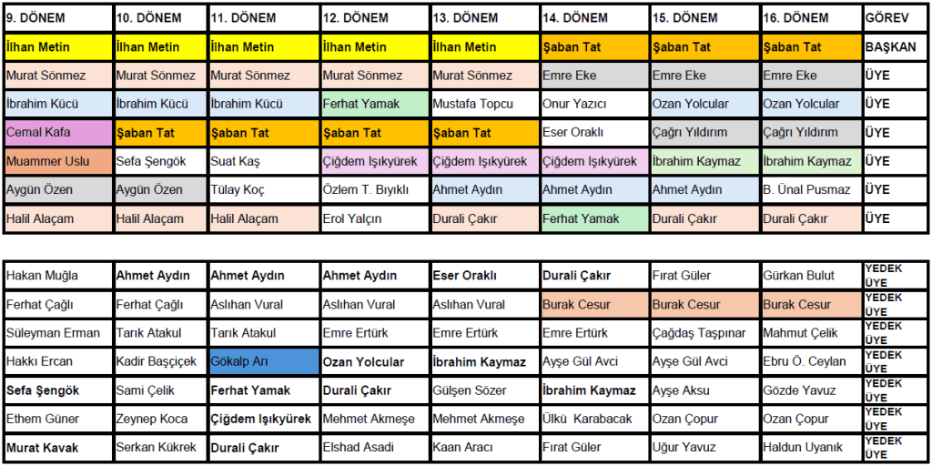 Şaban TAT 7; İlhan Metin 6; Murat Sönmez ve Ayhan Dolanay 5; Ali Cesur, Bahadır Demir, Haluk Karaman, Candan Latifoğlu, Halil Alaçam ve Cemal Kafa 4 kez şube yk koltuğuna oturmuşlar.